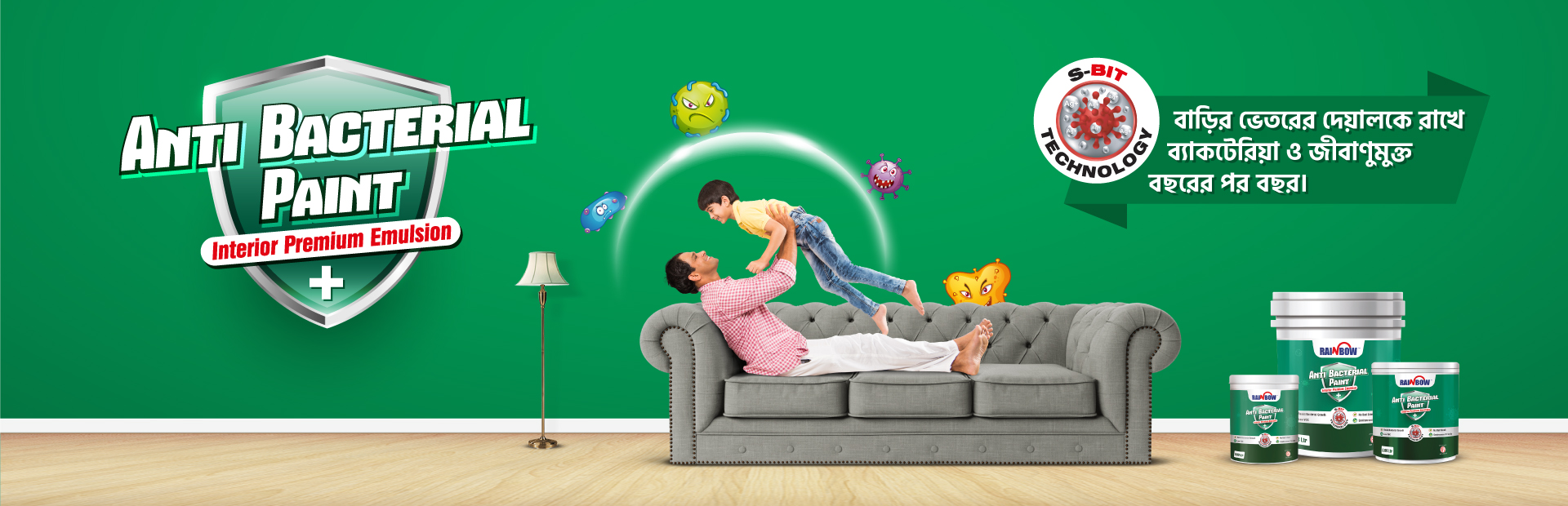 Anti-Bacterial paint is a unique addition of Rainbow. This paint is enriched with S-BIT technology and made with special emulsions that prevent the spread of harmful bacteria on the walls. Its sophisticated formula protects the walls from the effects of salinity and dampness. This paint is environment friendly and don't contain any harmful ingredients. It does not smell like ordinary paint. Painted surface can be easily cleaned with soapy water. The captivating color of this paint brings a unique beauty to the wall.